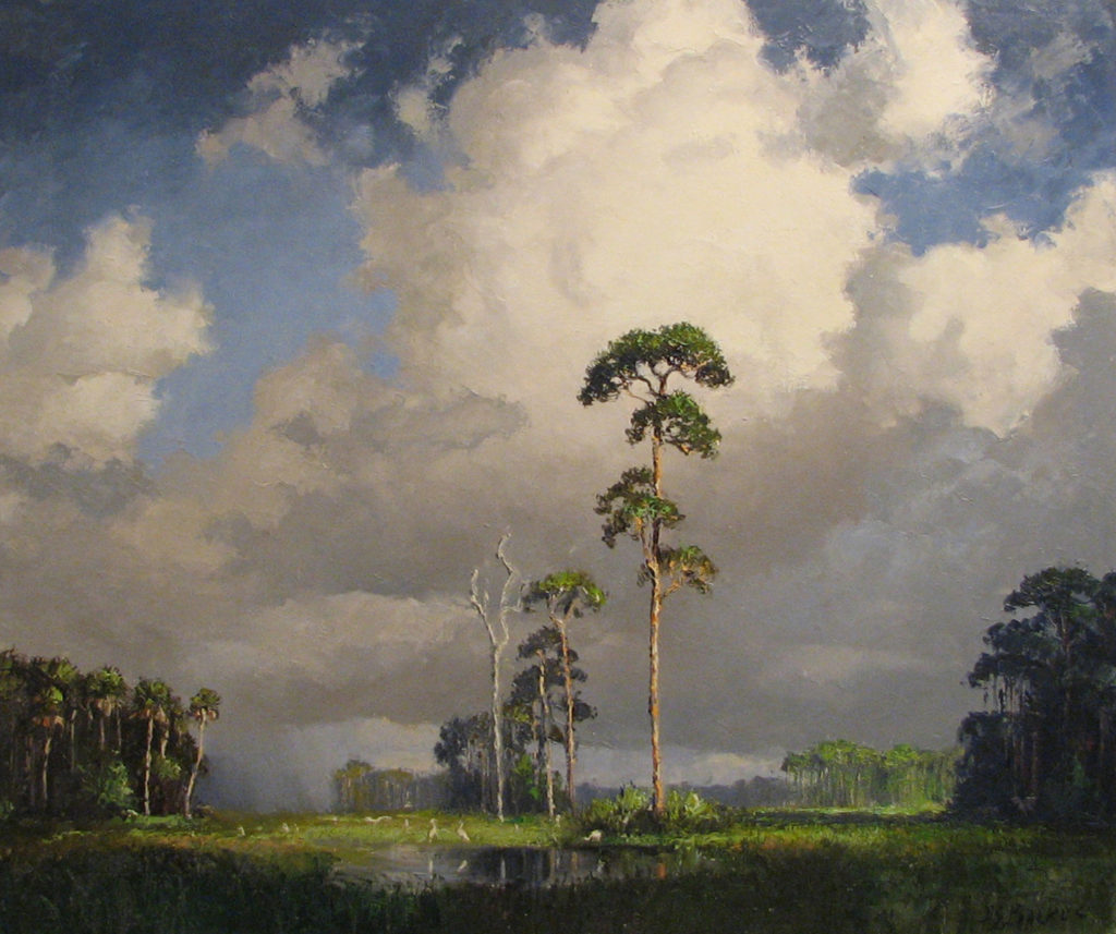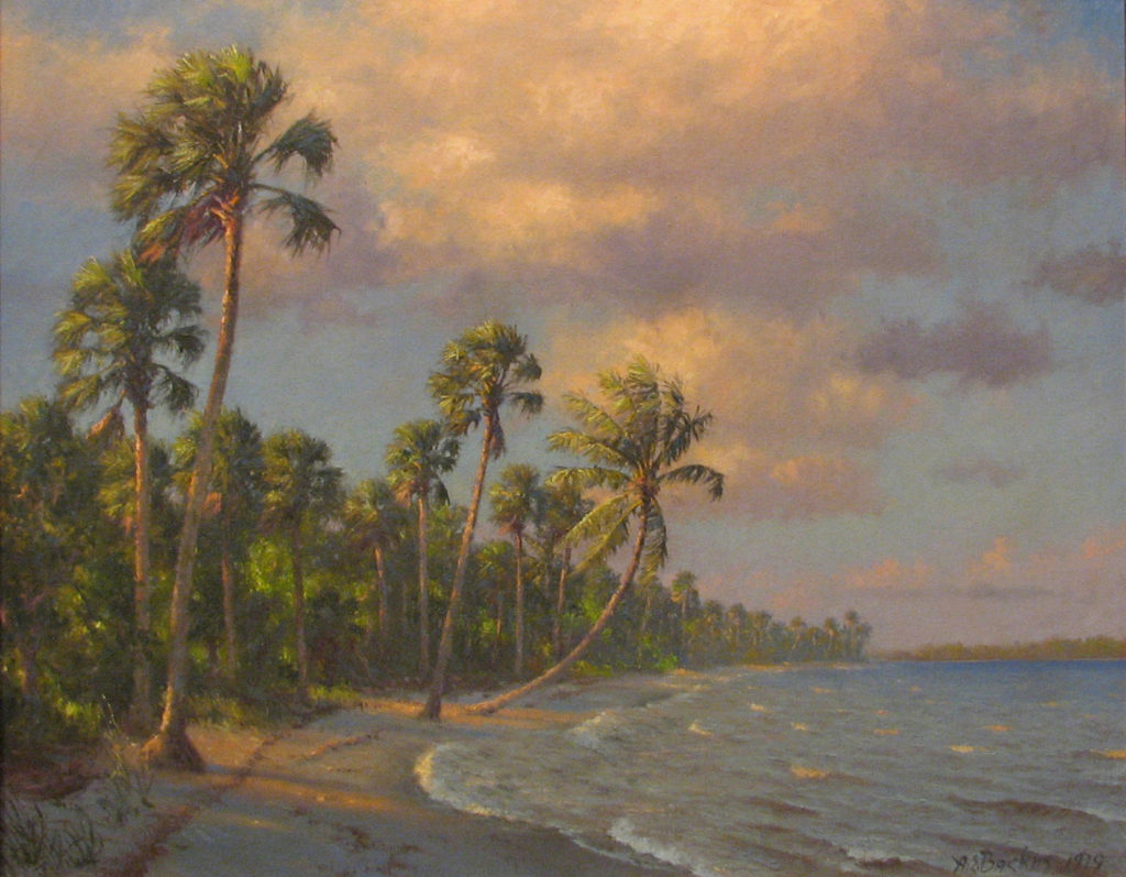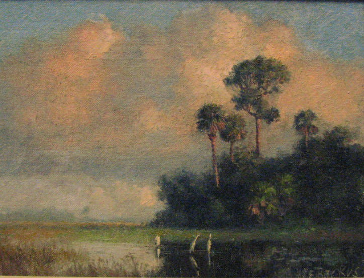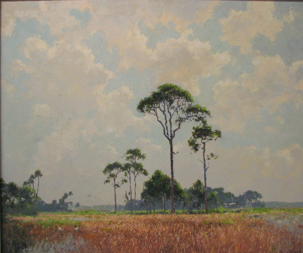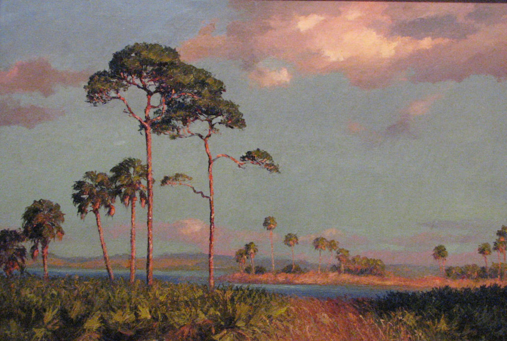 Albert Ernest "Beanie" Backus (1906–1990) was famous for his vivid Florida landscapes capturing a fast-vanishing Florida wild lands in pre-WW2 Florida. With an artistic career panning nearly 70 years, Backus would paint a wide variety of subjects - some impressionistically and some with exquisite and refined detail. Some involved Florida, though may involved other parts of the world, including the South Pacific, the West Coast, Europe and the Caribbean. Yet Backus would come to be seen as the seminal Florida landscape painter, and others who followed would emulate him. Here, we see some of the beautifully rendered paintings Backus created, primarily of the Indian River and Everglades areas of Florida.