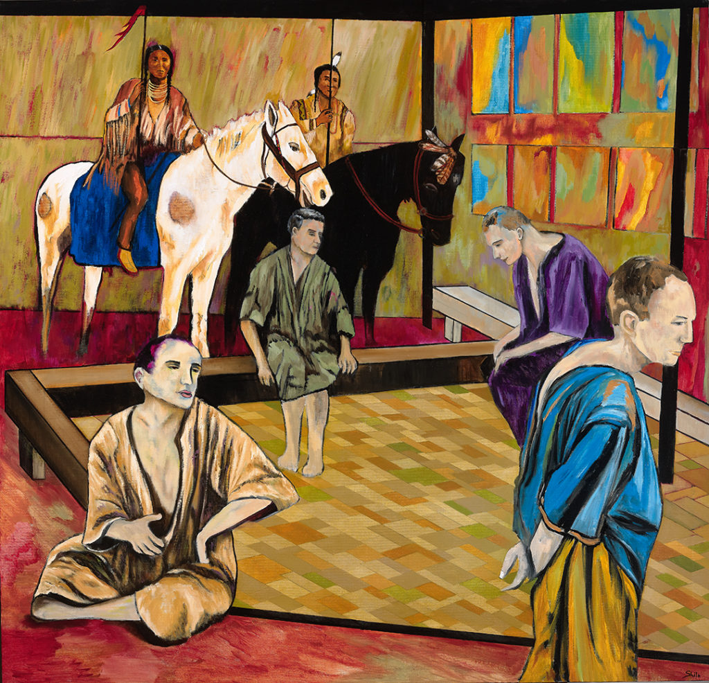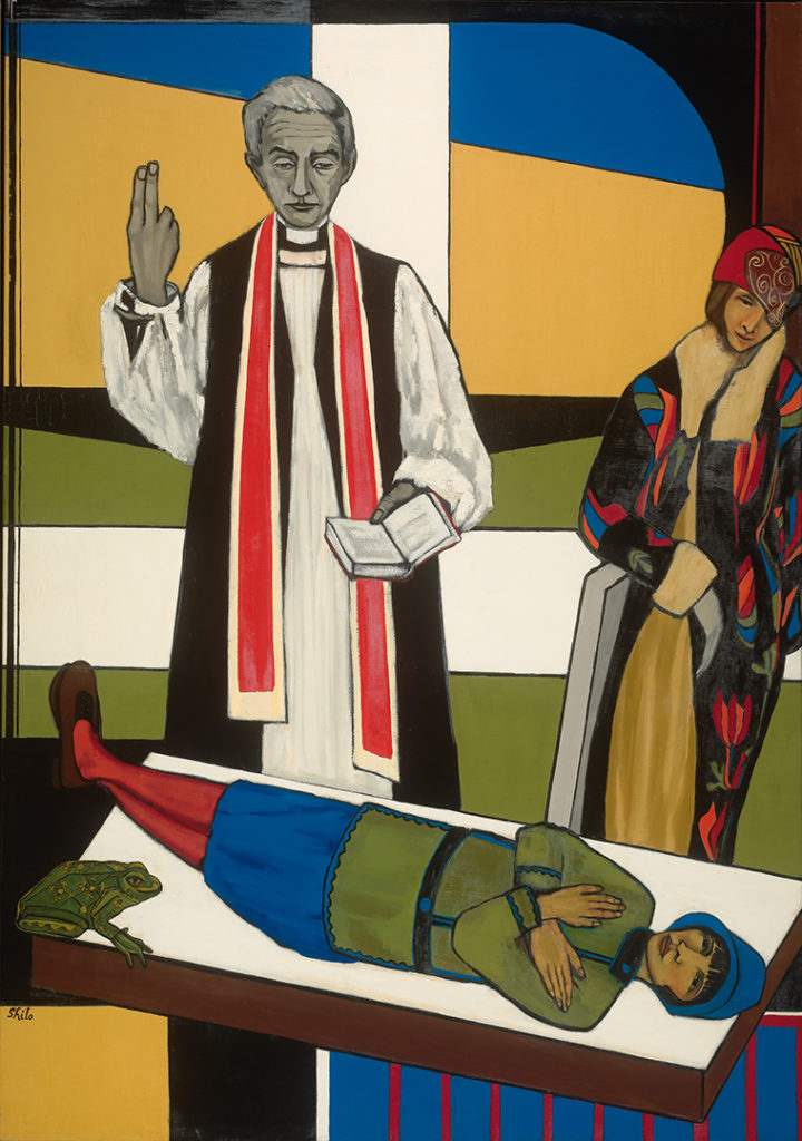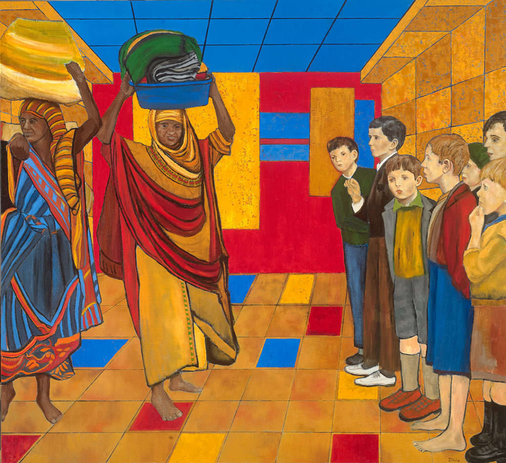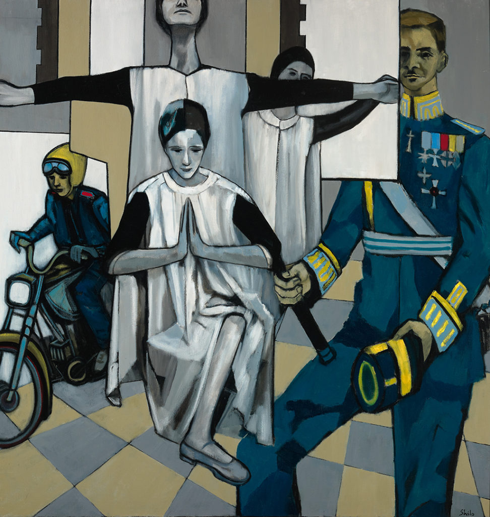 Barbara Shilo (1923-2015) came to the US from early Nazi Germany in 1938 at the age of 15. Her family supported her efforts to pursue her passion in the arts - studying acting, writing, and painting at New York University and the Arts Student League. In 1956, she went on to study psychology at the New School for Social Research while establishing herself as a painter throughout New York State and the country. Best known for her exhibit, Silent Voices Speak, a vivid depiction of Jewish life leading up to and during the Holocaust, she was also known for her evocative paintings using real and symbolic subject matter to express her concerns for social justice. Here, we see some of Shilo's depictions of groups of people.