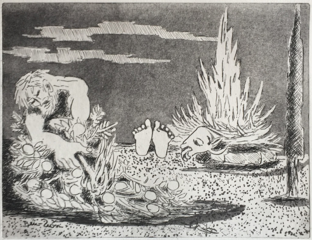 Ben Zion was an artist immersed in both the physical world of the 20th century and the religious and cultural worlds of classic Judaism. In this collection, he has used line drawings, sketches and etchings in black and white to portray the profane to the prophetic, the dark and dejected to the ecstatic and awe-filled.