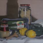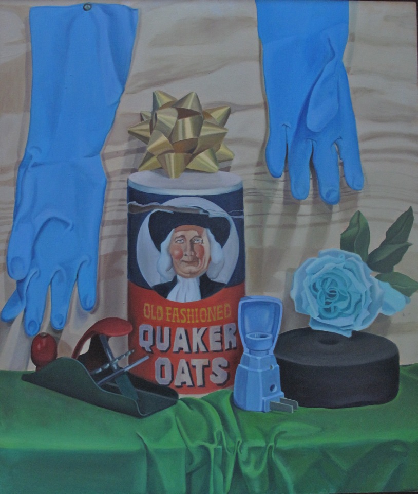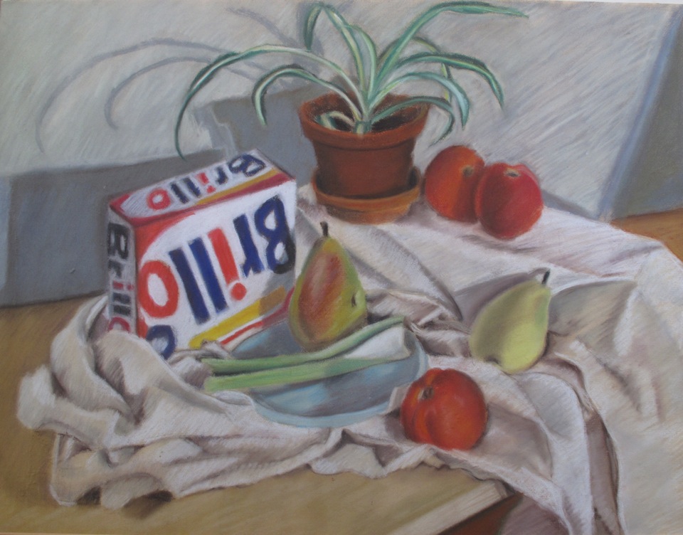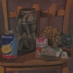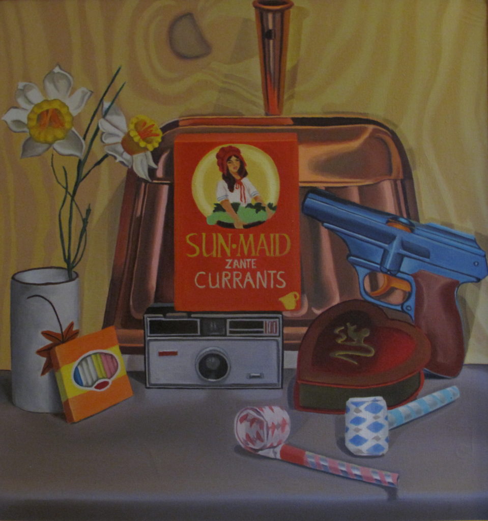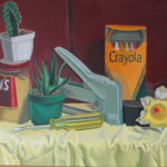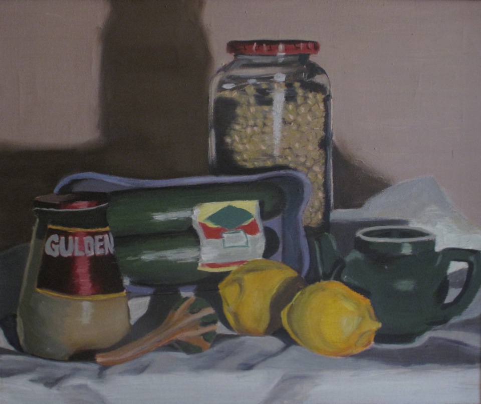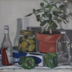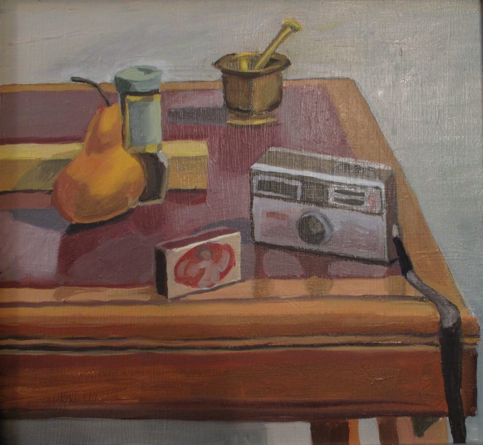 Daniel Mincer (1953-1981) was a versatile artist who had a strong interest in composition. His still life paintings, created both in oils and in pastels, combine everyday and commercial objects in a way that shows their relationships in daily life and their juxtaposition in form, color, and orientation. They often exhibit his offbeat and wry sense of humor. In the last three works here, household objects are larger than life and appear almost animate.