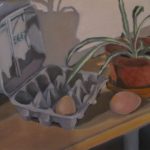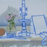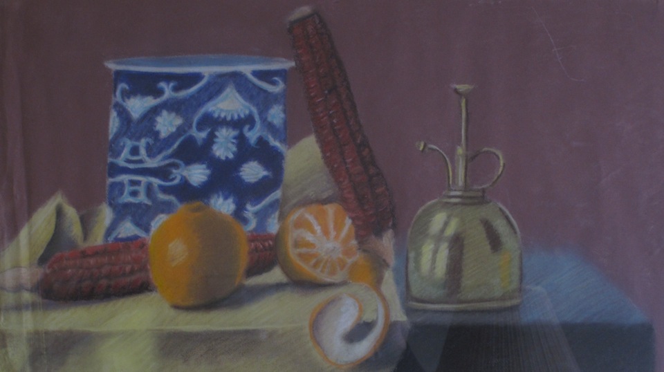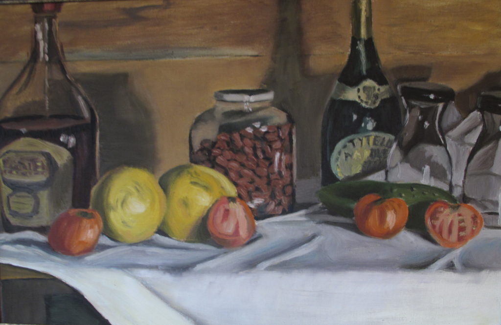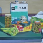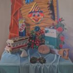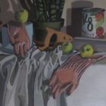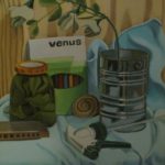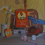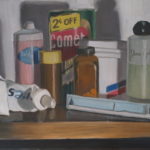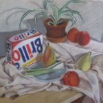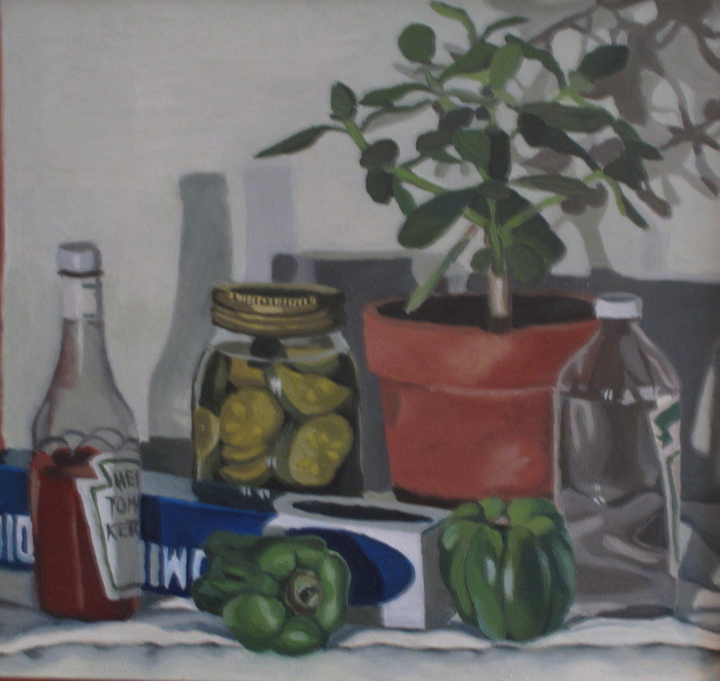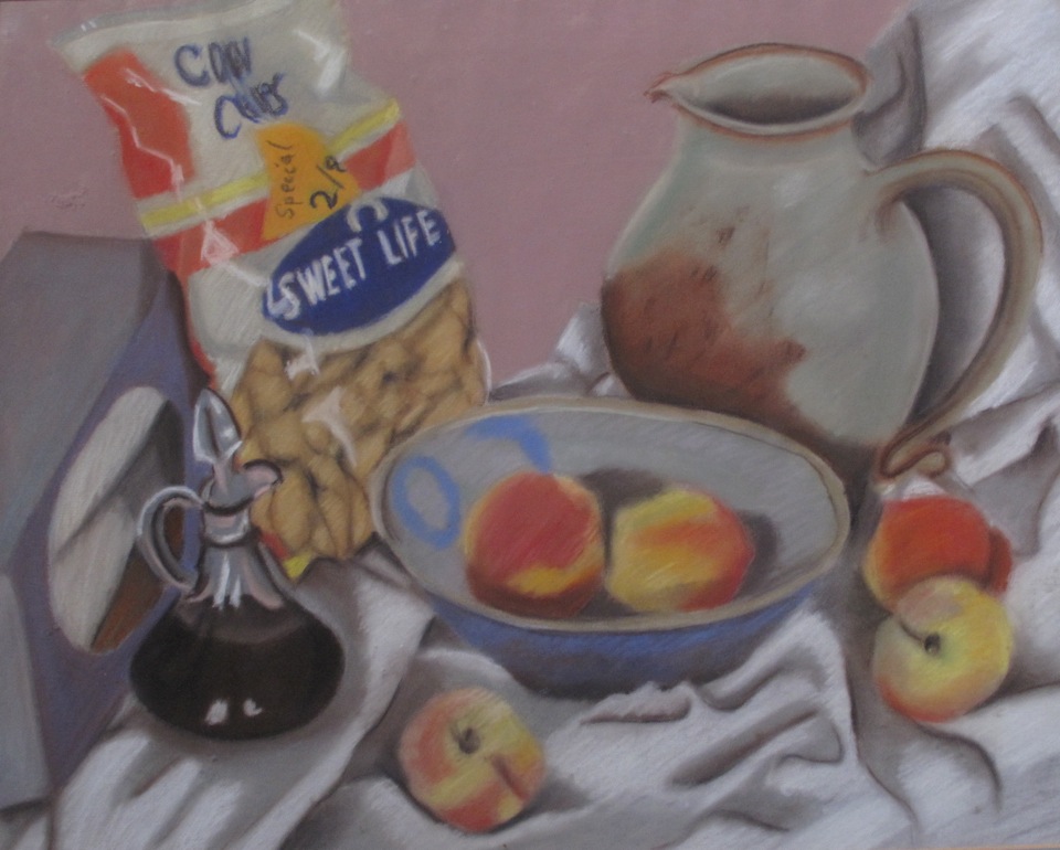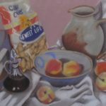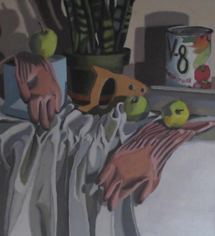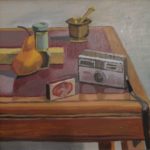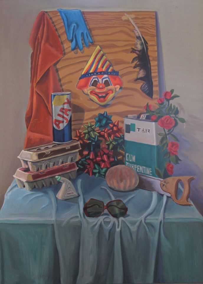 Daniel Mincer (1953-1981) was a versatile artist who had a strong interest in composition. His still life paintings, created both in oils and in pastels, combine everyday and commercial objects in a way that shows their relationships in daily life and their juxtaposition in form, color, and orientation. They often exhibit his offbeat and wry sense of humor. In the last three works here, household objects are larger than life and appear almost animate.