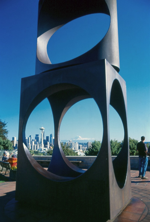 Doris Totten Chase (1923-2008) was a bi-coastal artist - engaged in and well recognized in New York City for her groundbreaking video and film projects, and equally regarded in Seattle for her paintings, woodworks, and sculptures, large and small. Her life was memorable, her work was groundbreaking, and her public art is enduring. ArtsWA, the Washington State Arts Council, recognized Doris Chase as one of its most pre-eminent artists. Here, we see how form, especially geometrics and symmetrics, formed an essential part of her sculptures and woodworks.