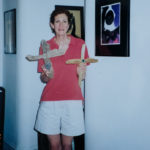image Photo of Elizabeth holding two of her crosses. Circa 1990