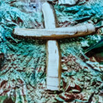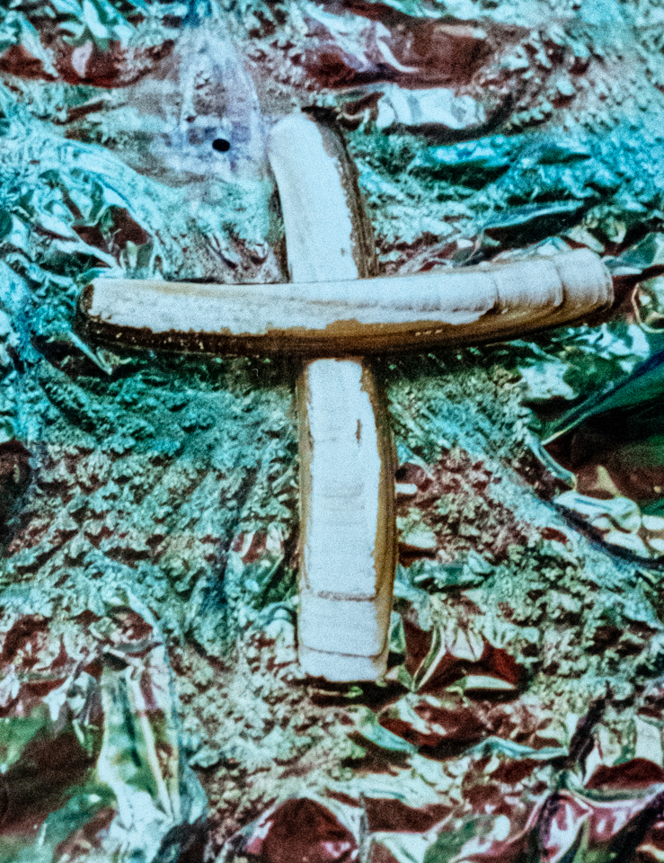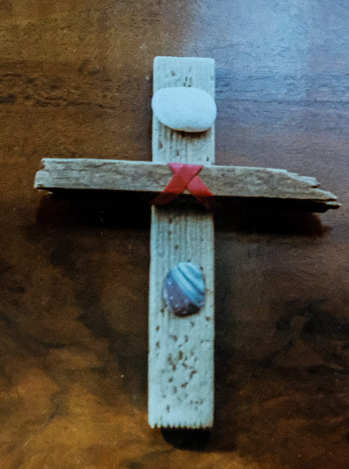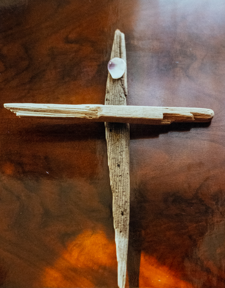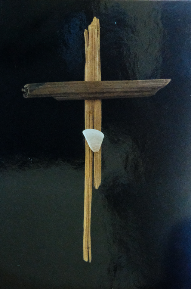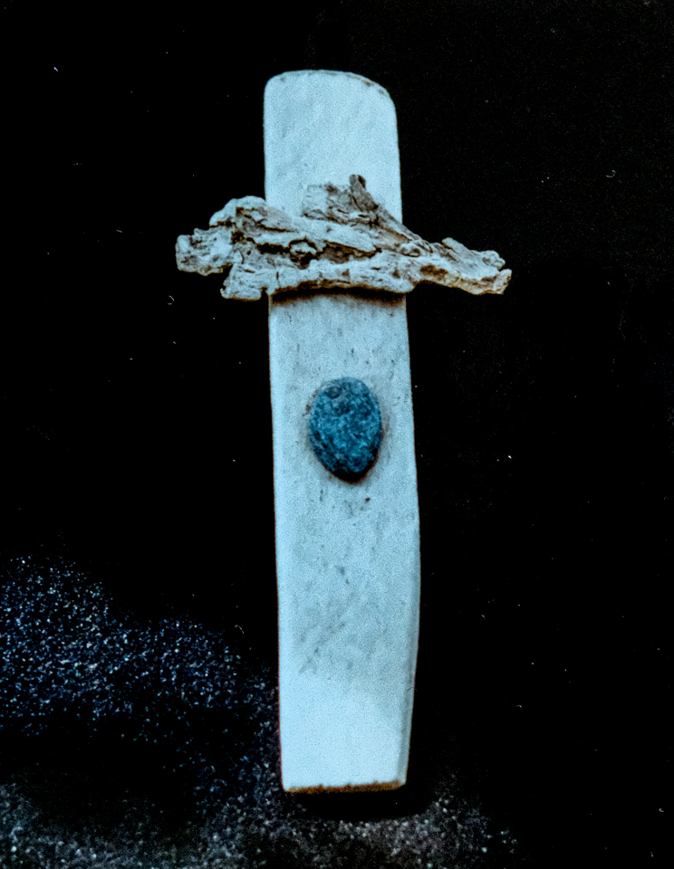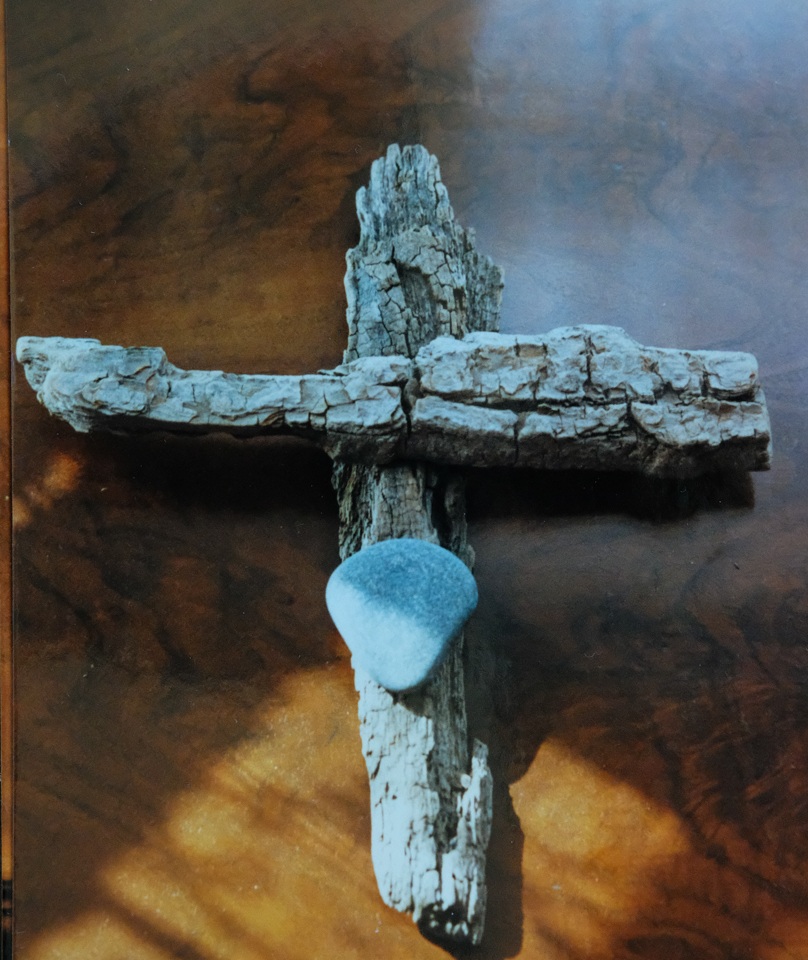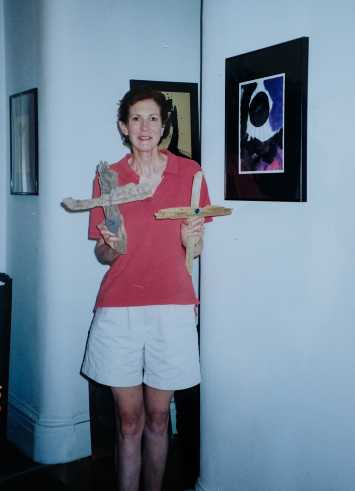 Though she had stepped out of the Catholicism she was raised in, Elizabeth took an interest in creating a series of driftwood crosses. Elizabeth grew up in Long Island, New York, loved the beach, and during her beachcombing excursions on vacations would sometimes pick up driftwood pieces. From that, together with the shells and stones she culled from the bounty of the waves, Elizabeth created some unique crosses. Some of the crosses were sold, but a photo record was taken of most of them.