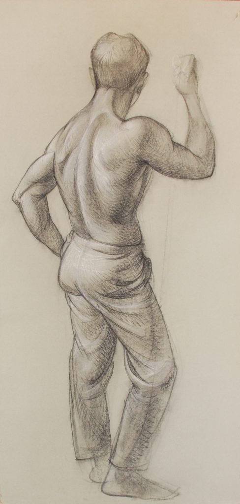 Friedolin Kessler (1913-1995) shows an unusual variety of both subject matter and treatments. While noted for his linoleum cuts he created in the early years of his career, especially his "Mission" series and the CCC Camp Art, he was also accomplished in drawing, painting, photography, and woodworking, including wood turning and jewelry-making using wood and other media. As a young adult he moved from Missouri to California, spending the rest of his years there devoted fully to his life in the arts. He remained prolific and notable throughout his life for his oil and acrylic painting, watercolors, portraits, charcoal works and commercial art. This portfolio shows some of the many ways in which Friedolin captured the human form, of men and women in daily activities, as nudes, and in humorous caricatures.