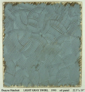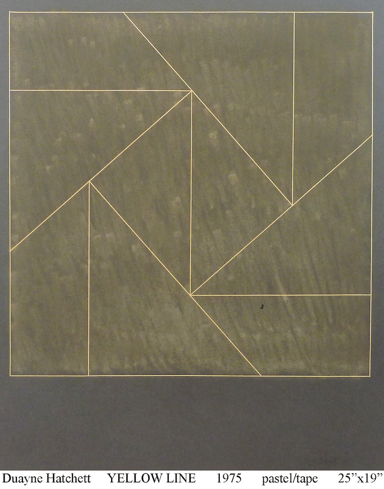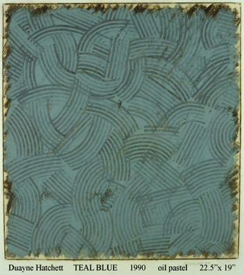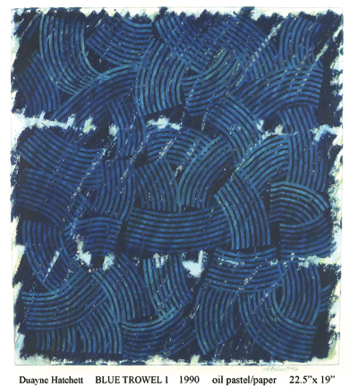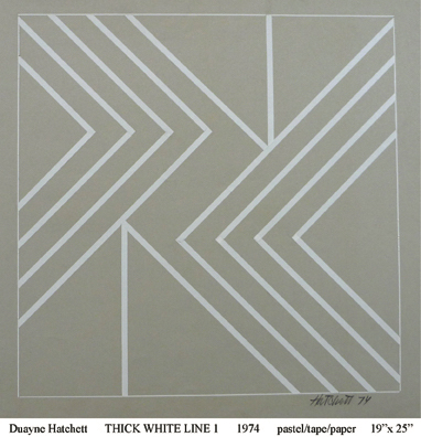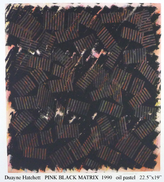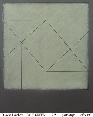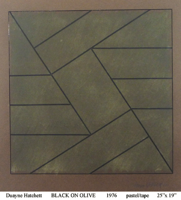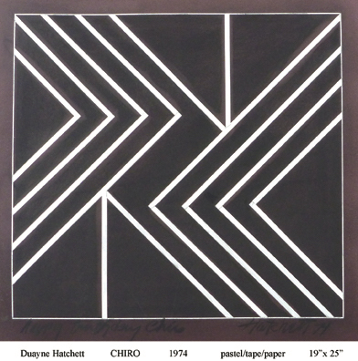 Duayne Hatchett's oil pastels on paper are similar his acrylic painting. He invented tools (trowels) to make marks and incorporated the use of tape in his geometric works.