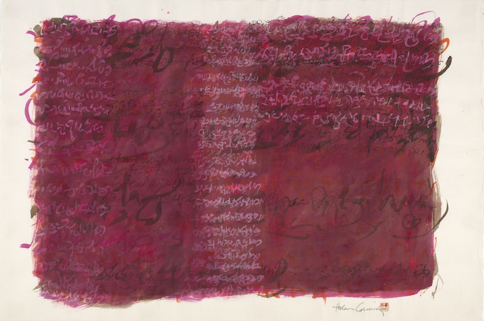 Helen Corning (1921 - 2011) painted exquisite abstractions - large canvases revealing a spare palate of earth tones and a layered simplicity honed over 60 years of painting. Her life and her life’s work were proudly described by her lapel pin: ART SAVES LIVES.