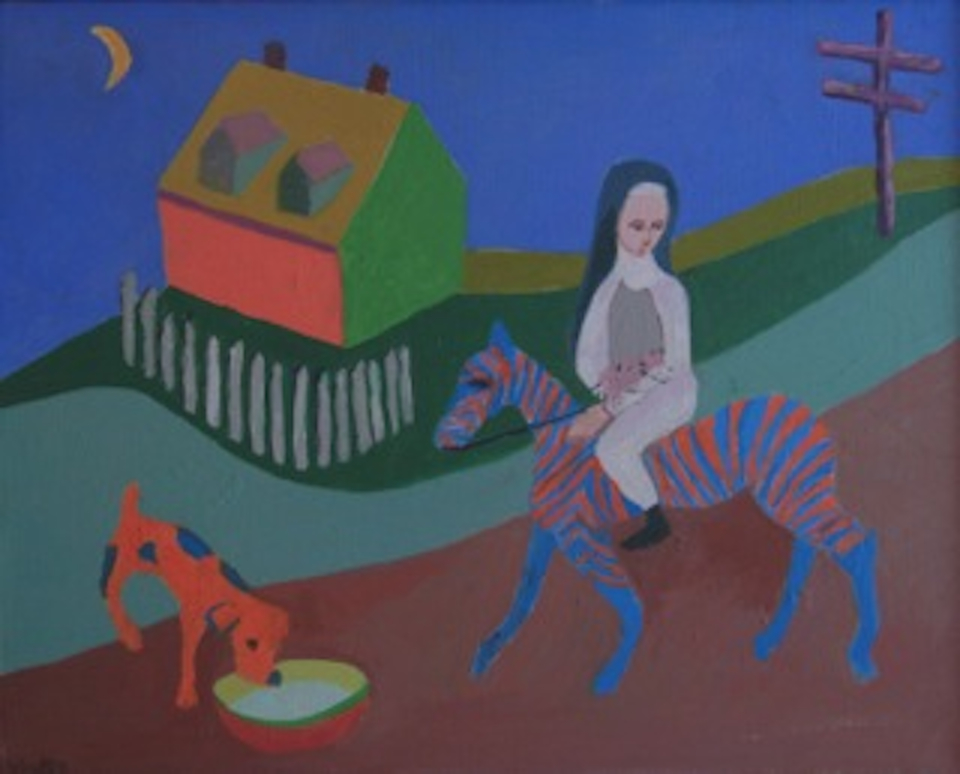Phyllis Sklar (1924-2010) was an artist of many expressions, best known for her primitive paintings of contemporary themes and landscapes and for her imaginatively rendered hand-wrought jewelry.