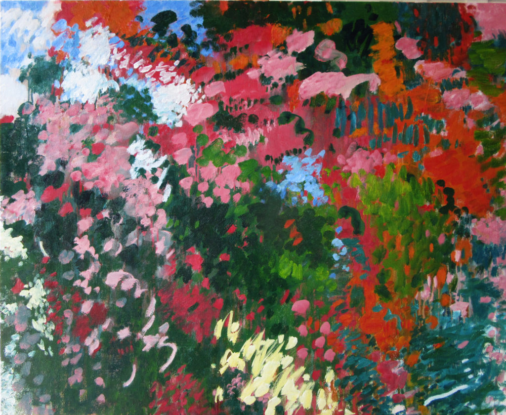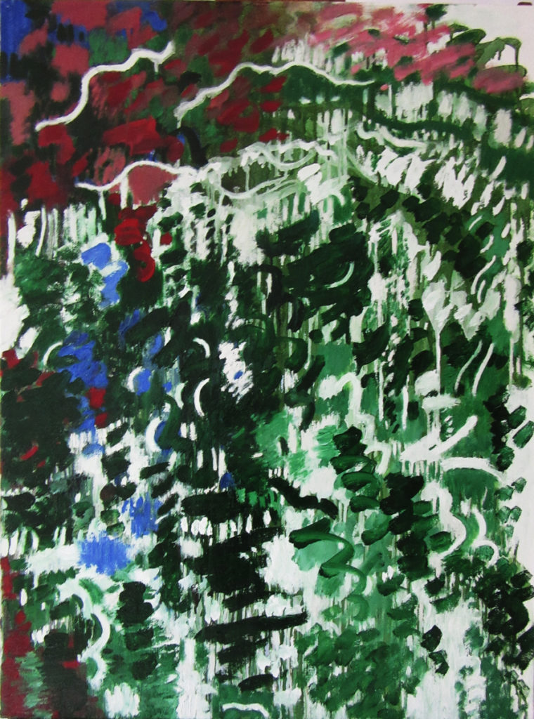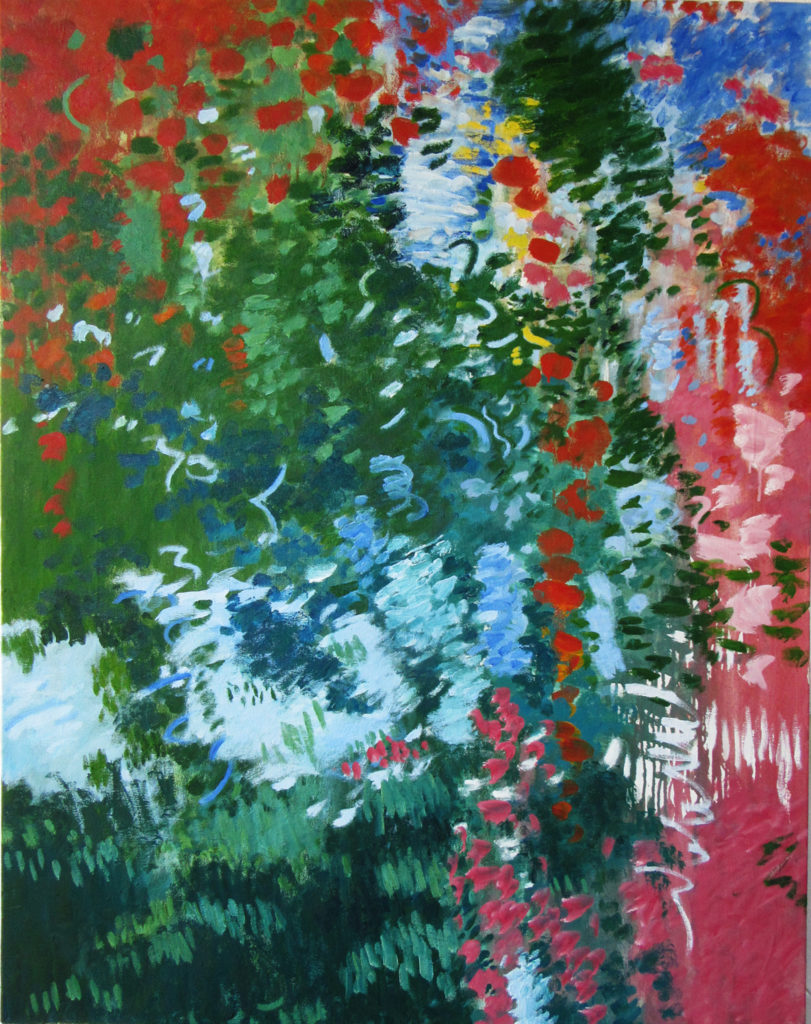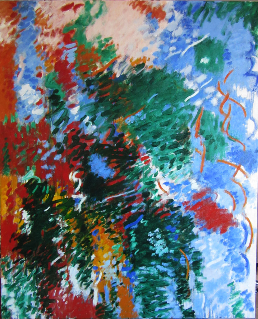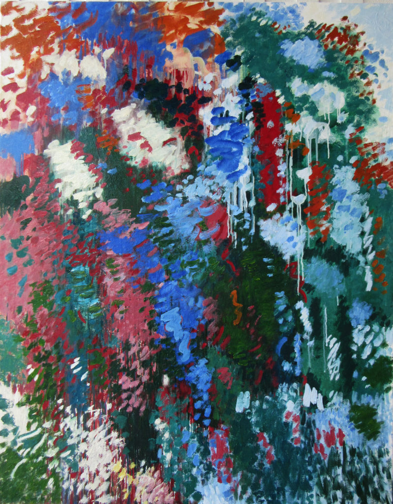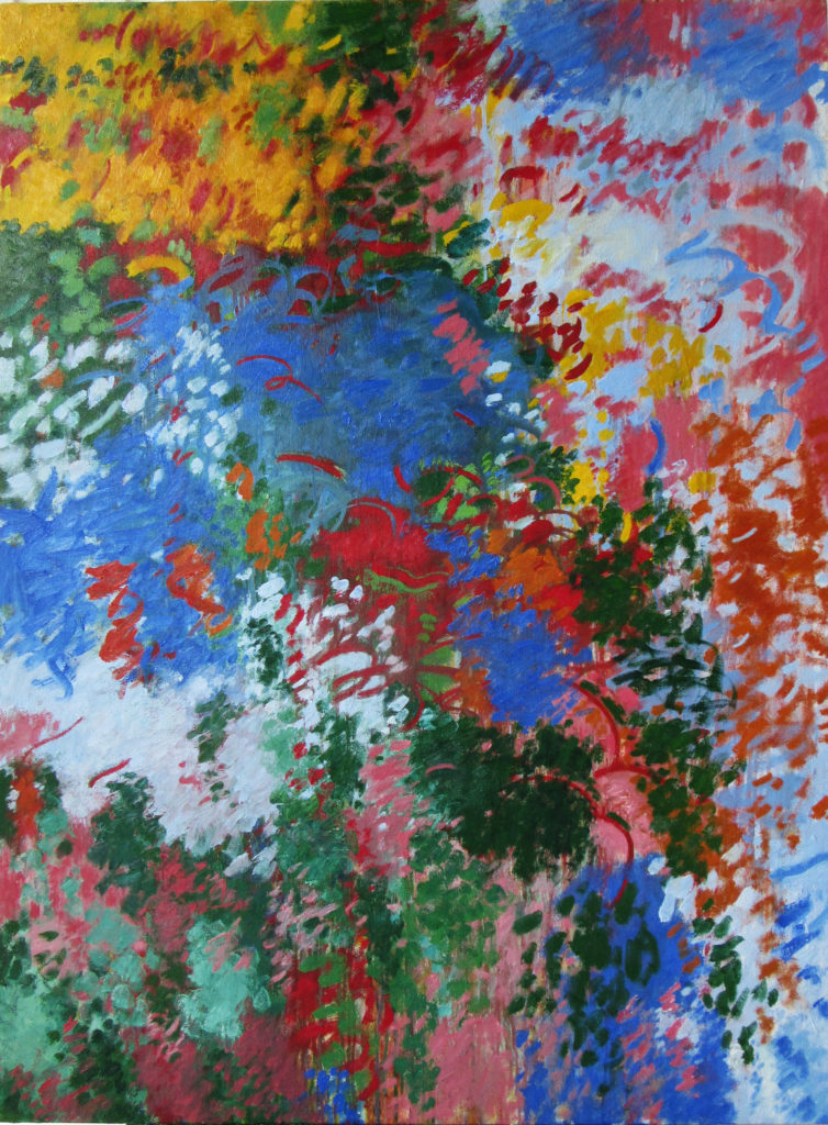 Informed by Impressionists/Abstract expressionists, compositional concepts absorbed decades ago evolve in me still. I express my most passionate realities, (the story beneath ordinary everyday life things), producing on canvas much of what people feel when they get religious. How I place shapes together becomes the structure. The picture plane in the paintings changes constantly through the volume that color creates, in constant relational movement. What one thinks is coming forward then shoots back when something else comes forward. The general misunderstanding of a painting is due to missing its spiritual and technical qualities. Each of my paintings represents formal experience, while being very personal at the same time. My paintings are earthy, rock-like, weighty, yet have in them rhythm of the sea. I am a nature painter, the nature “out there” coupled with my own internal landscape. My inner finds the equivalent “out there.” Each painting has immediacy to it, but takes time to complete; it’s my own personal paradox. The painting is the consequence of technique and skill brought about by the concept.