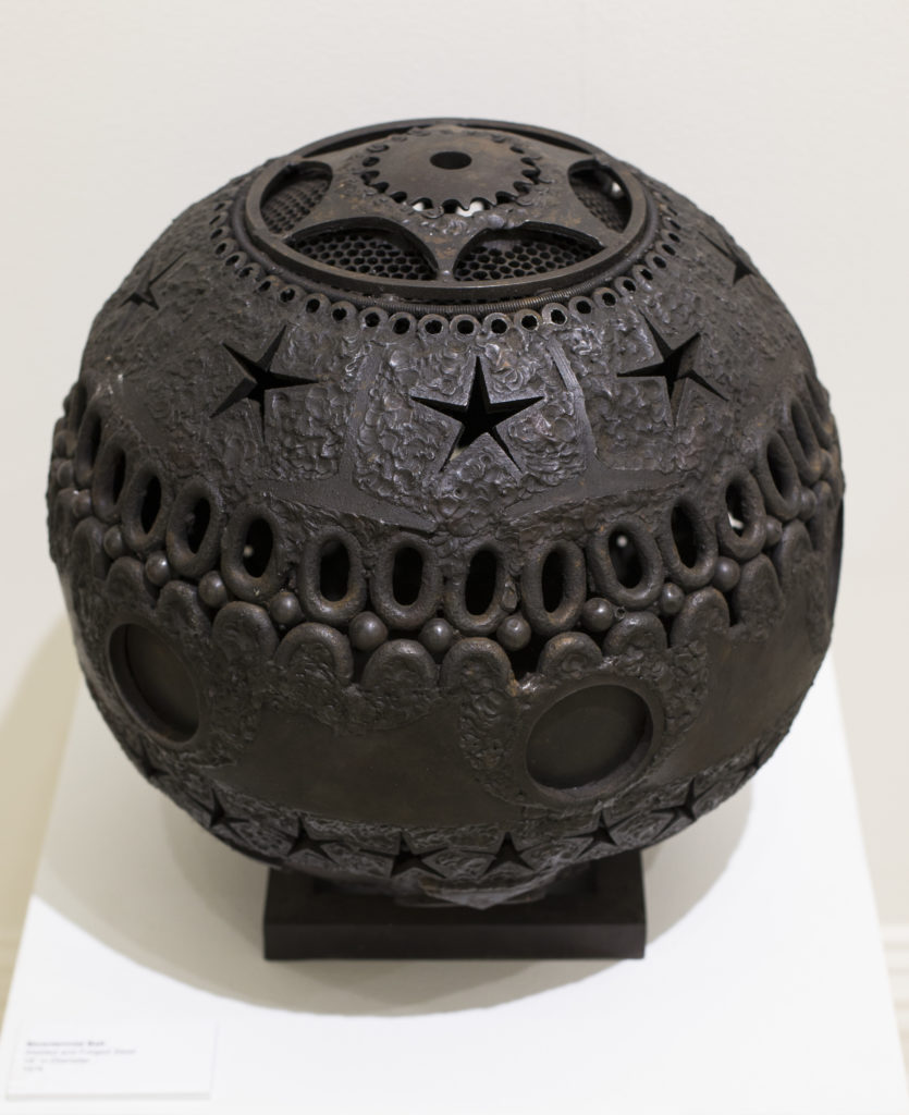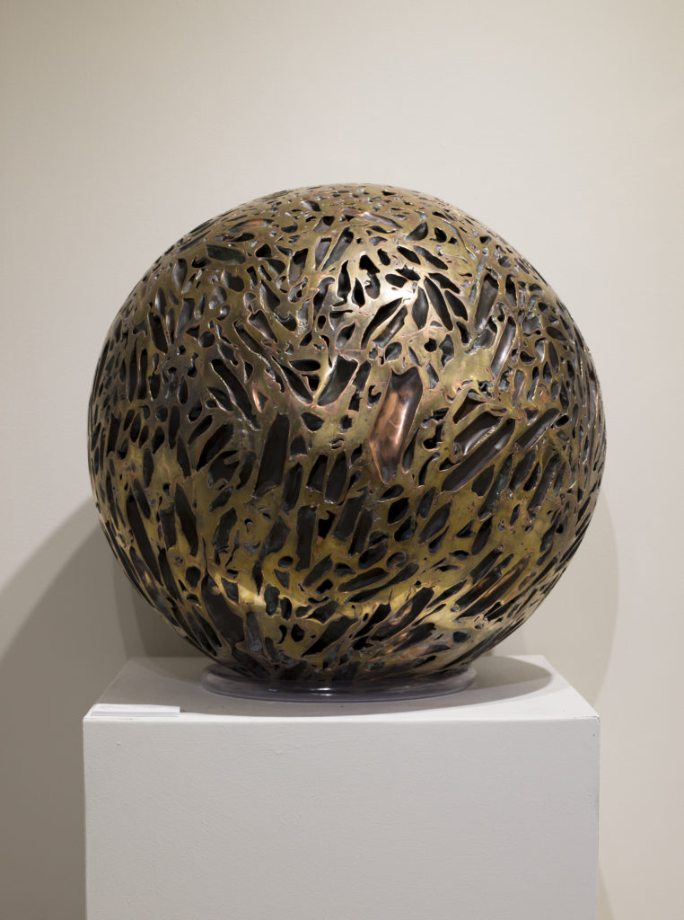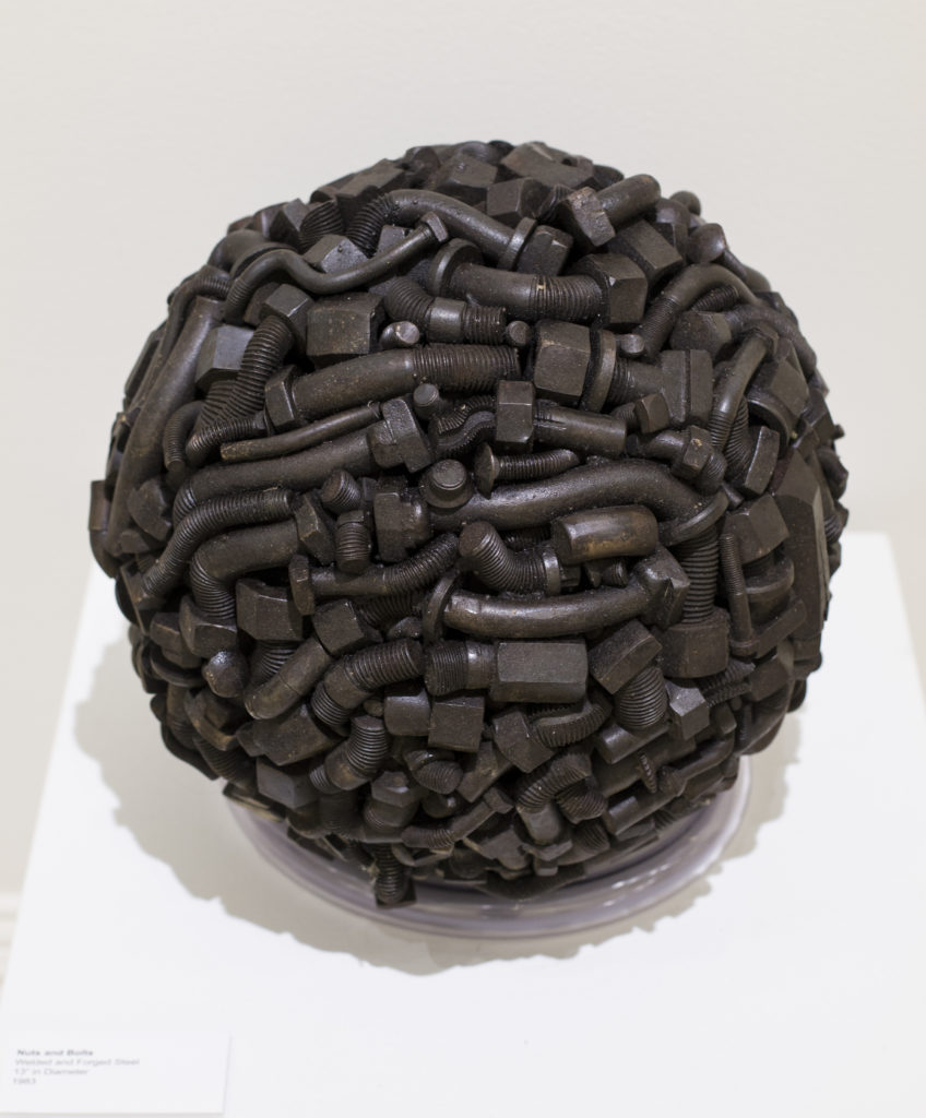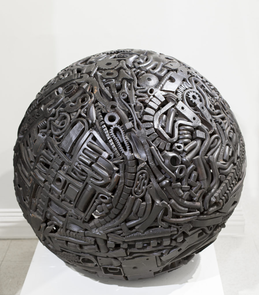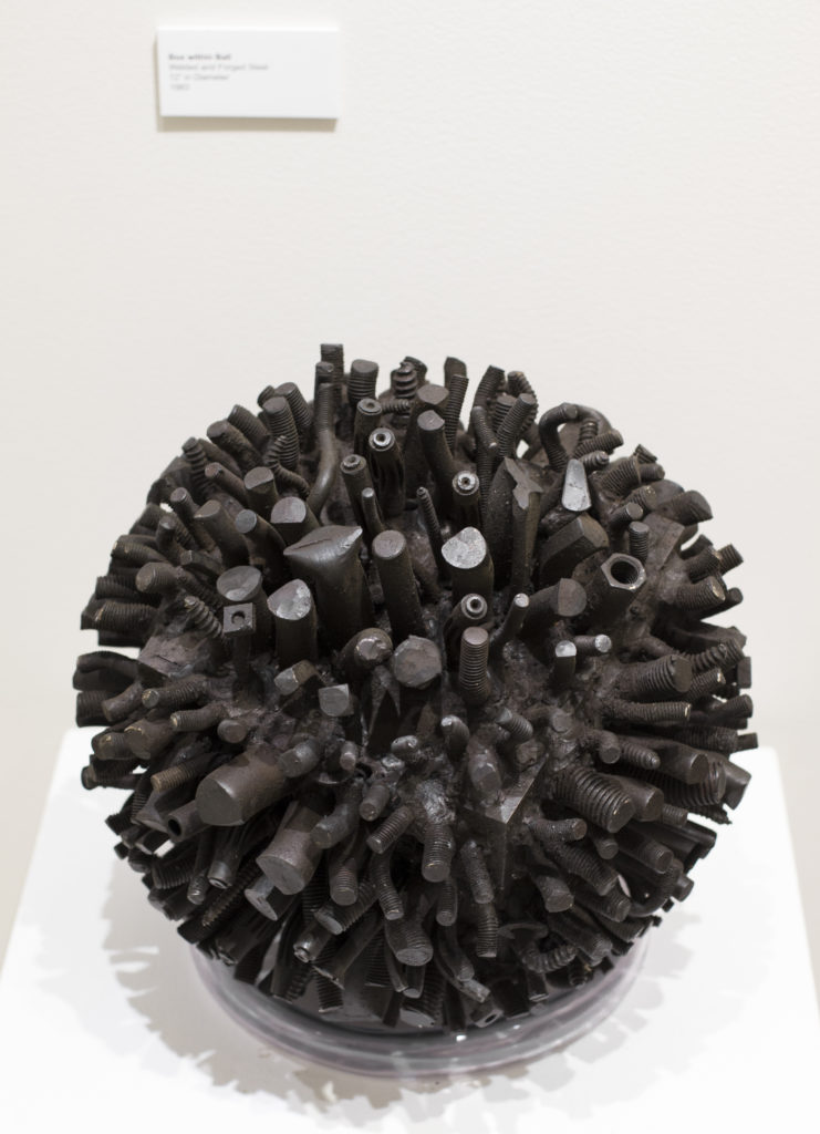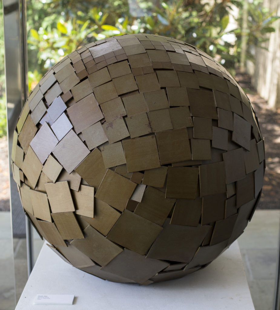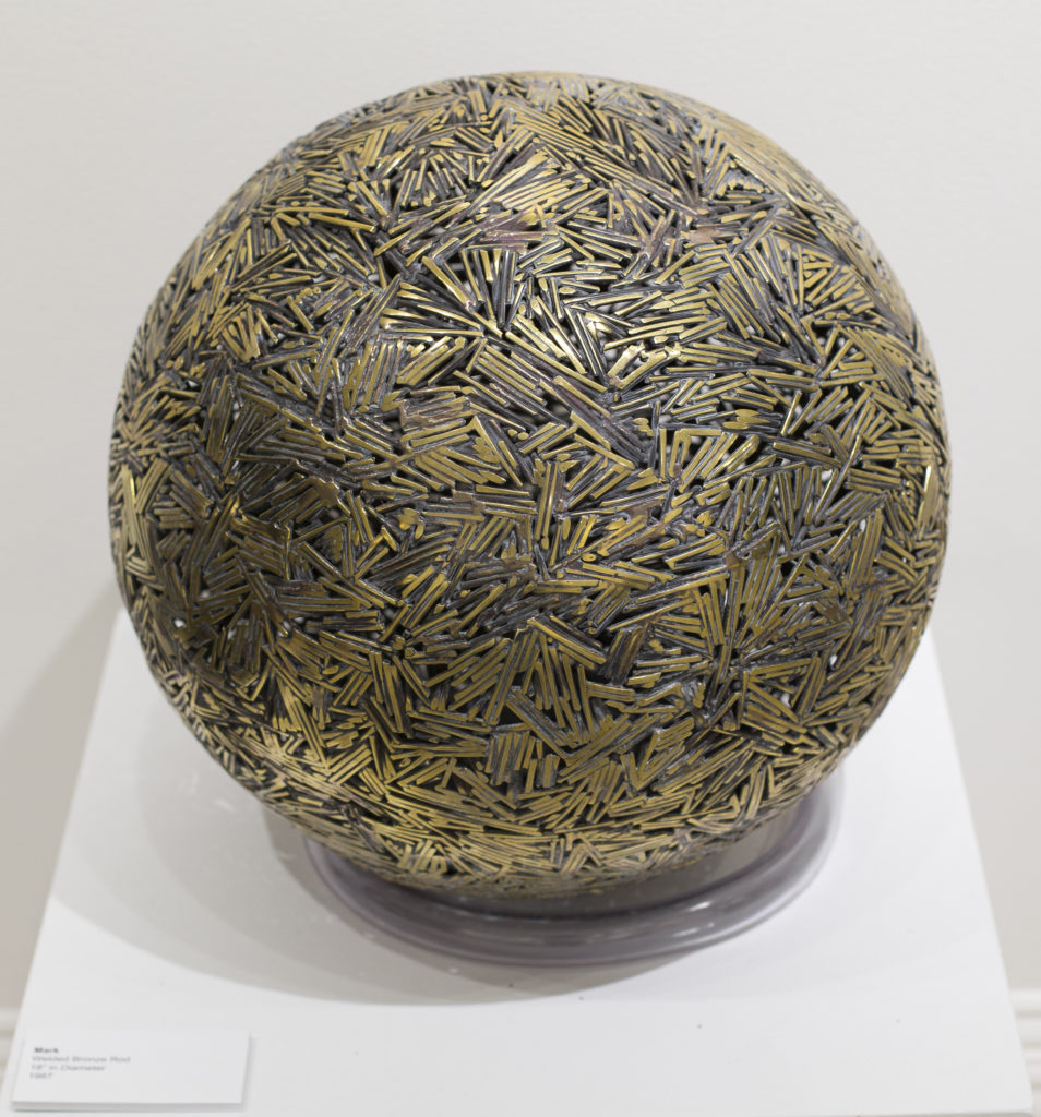 Michael Malpass (1946-1991) was blessed with creativity - his body of work included drawings, collages, paintings and assemblages, but he was best known for his sculpture, especially the spheres he forged from found industrial objects. He believed that the sphere was the most perfect form: “It is efficient. A sphere has the most volume for the least surface area. The sphere is both amorphic and geometric and the center is always equidistant from the surface. The sphere is whole. The form is simple, yet the surface is complicated. My sculptures are animated, yet peaceful.” Here, we see that animation and peacefulness, and are treated to a glimpse of the perfection he so sought.