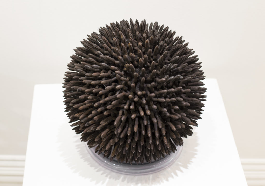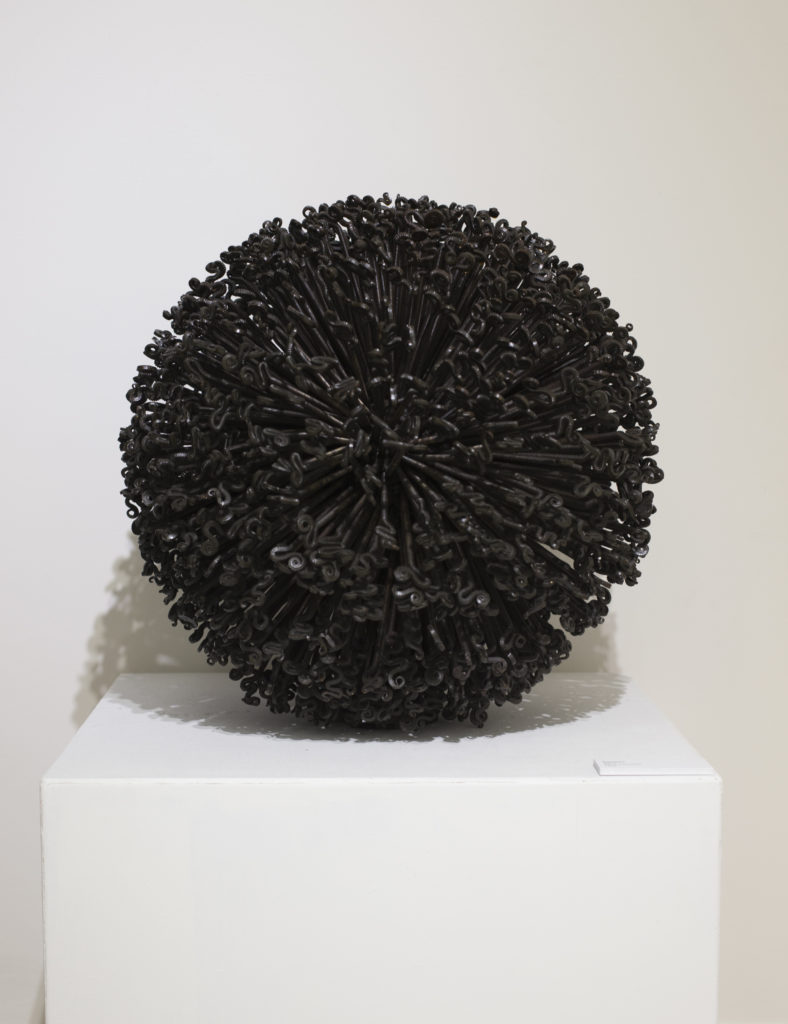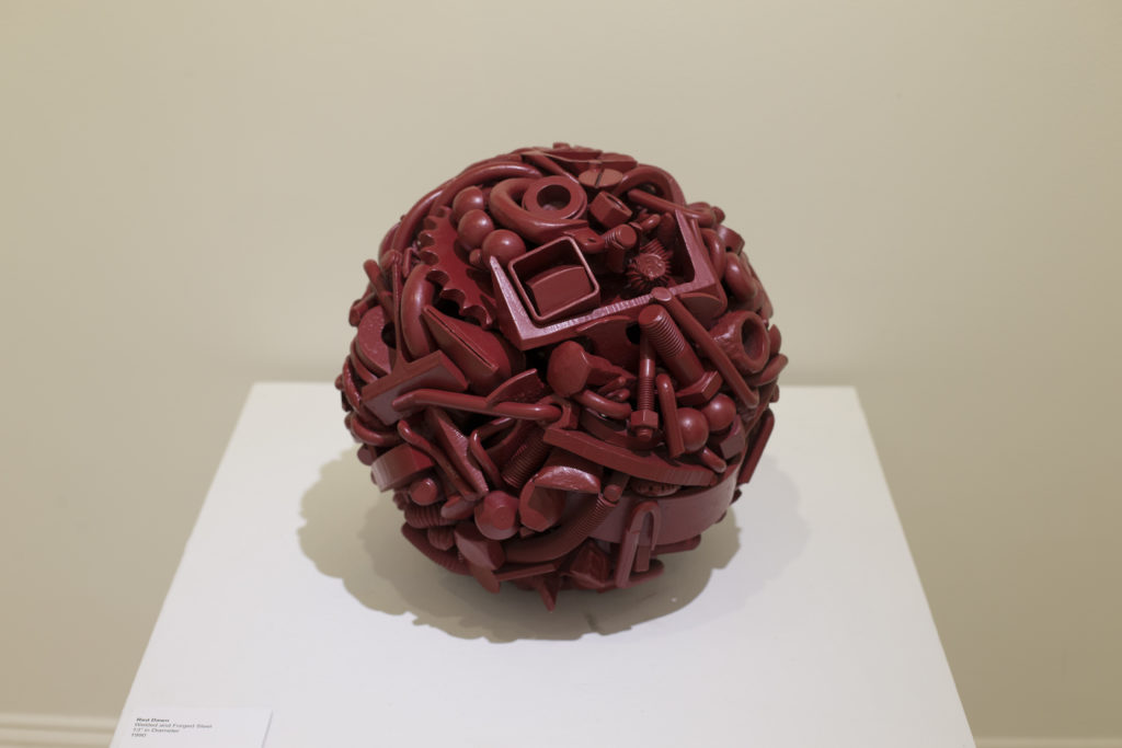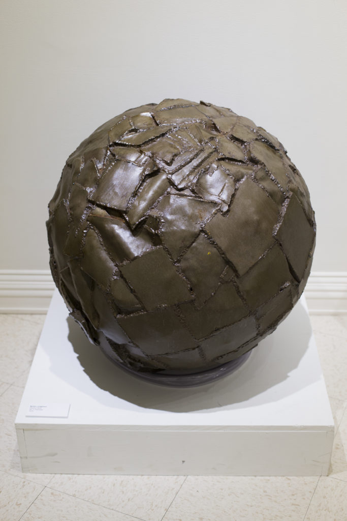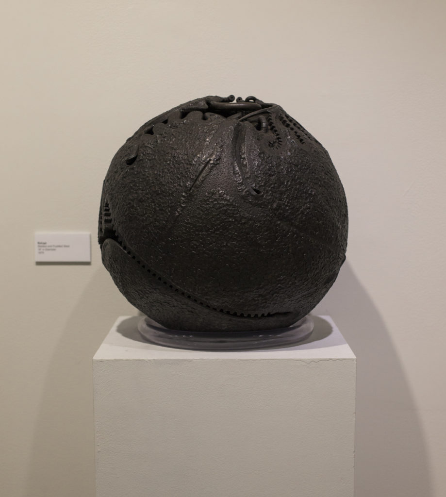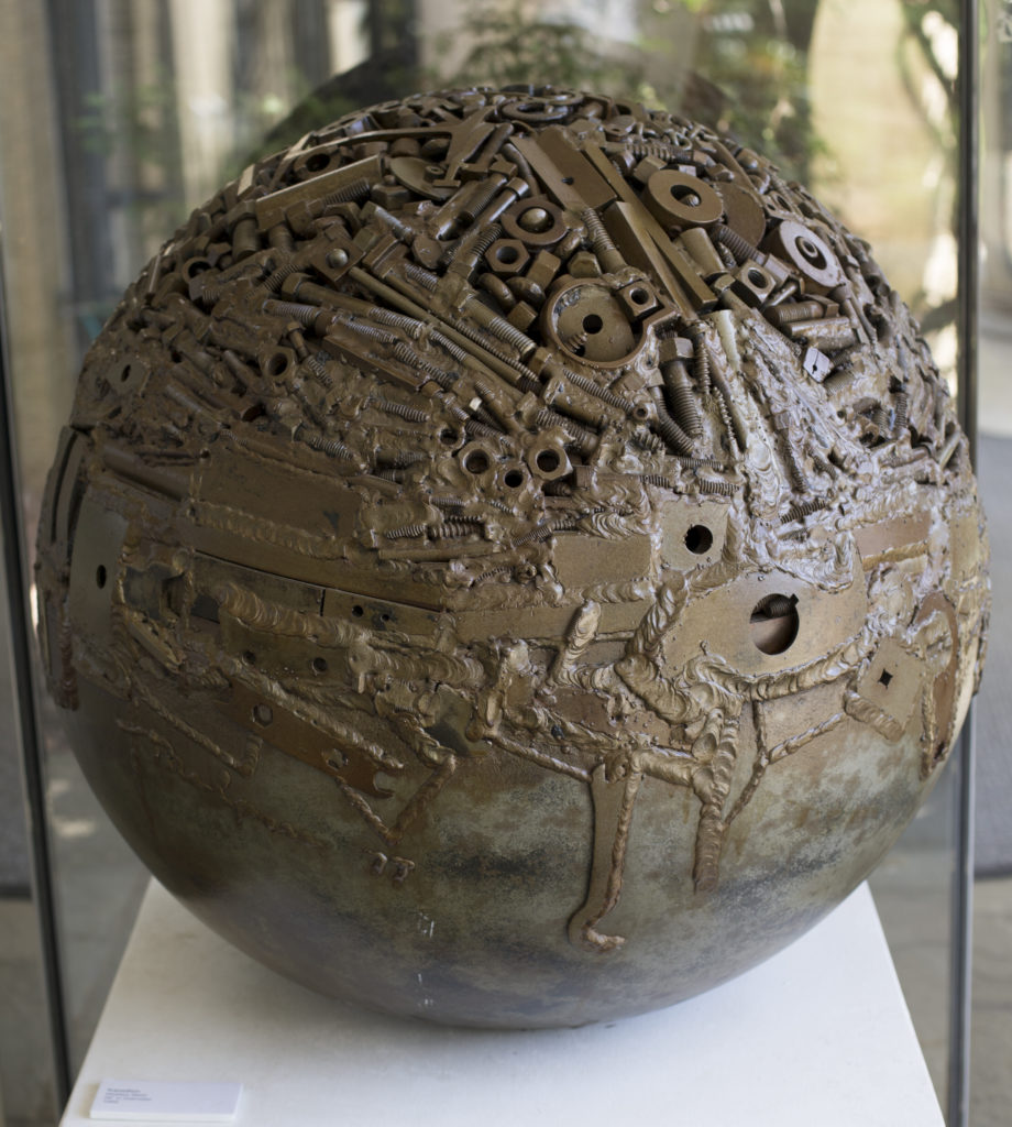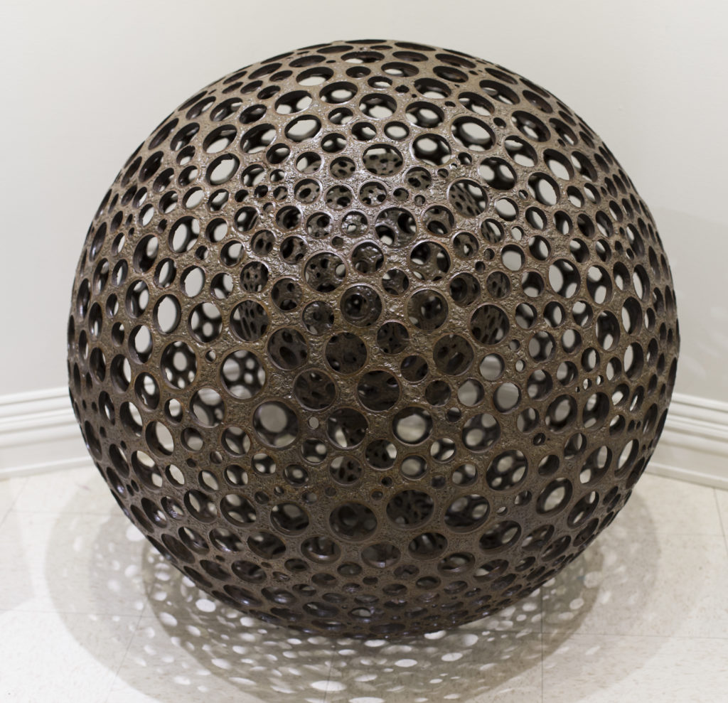 Michael Malpass (1946-1991) was blessed with creativity - his body of work included drawings, collages, paintings and assemblages, but he was best known for his sculpture, especially the spheres he forged from found industrial objects. He believed that the sphere was the most perfect form: “It is efficient. A sphere has the most volume for the least surface area. The sphere is both amorphic and geometric and the center is always equidistant from the surface. The sphere is whole. The form is simple, yet the surface is complicated. My sculptures are animated, yet peaceful.” Here, we see that animation and peacefulness, and are treated to a glimpse of the perfection he so sought.