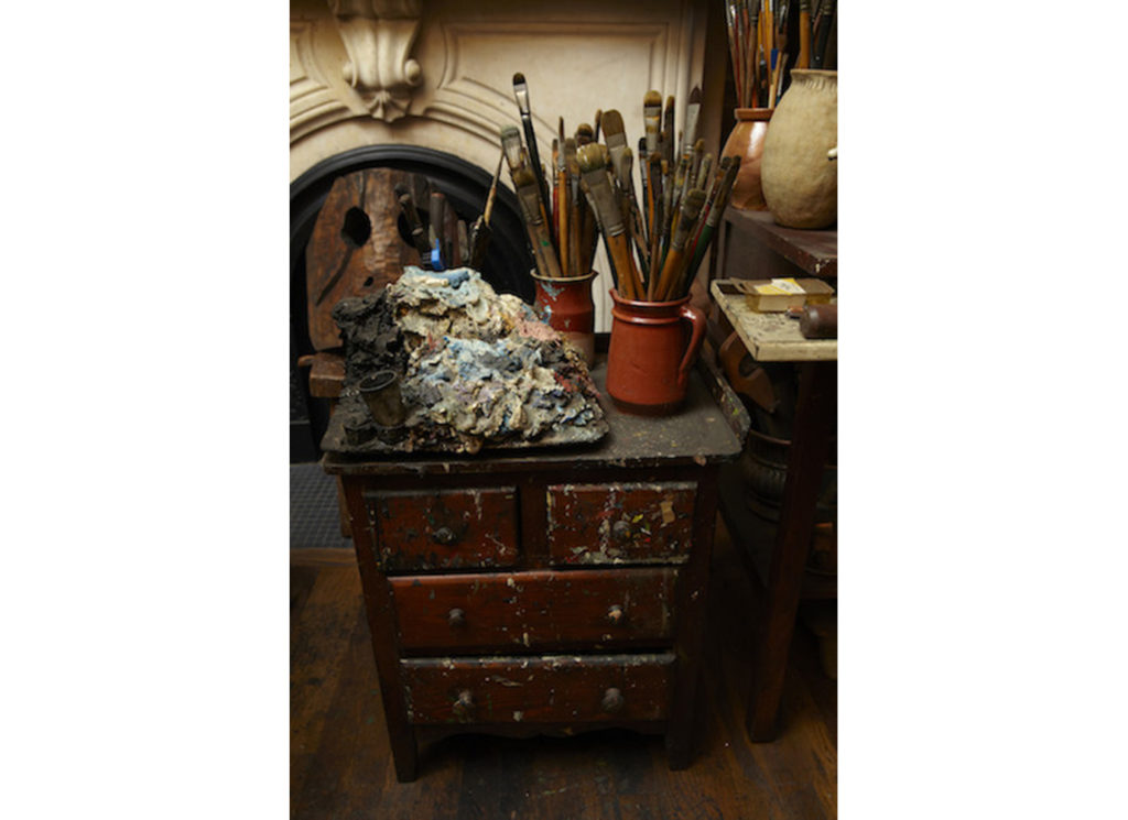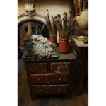 This group of photographs portrays Ben-Zion’s home/studio in Chelsea, Manhattan. His own drawings, paintings and iron works are interspersed with the objects he gathered around him: ancient and ethnographic artifacts, pebbles, minerals, shells, clay concretions – for Ben-Zion these were a testimony to the creativity of nature and man.